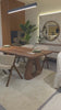 Masă cu blat finisaj nuc natural și picioare sculpturale, cu linii organice și muchii rotunjite.